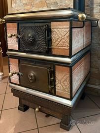 La Stufa Bergamasca Adriana, modello Alessandra Ottime condizioni, utile sia per riscaldare (molto e bene fino a 90mq) che per cucinare (sia nel forno che sul piano superiore) Dimensioni: Altezza 97cm Larghezza 65cm Profondità 65cm Caratteristiche: Stufa a legna nello sportello superiore Forno nello sportello inferiore Finiture in rame e rivestimento in maiolica rosa antico Preferibile ritiro di persona, zona Monza Brianza