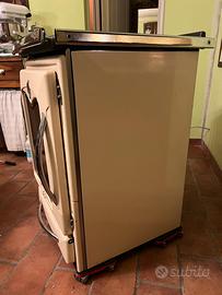 Stufa a legna Nordca modello cucinotta colore baige con i primi metri di canna fumaria in acciaio 3mm brunito e curva per attacco a muro.