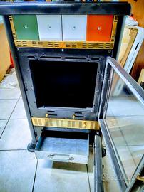 di recupero cenere è nuovo...le maioliche esterne sono completamente state sostituite,...queste si rifanno alla bandiera italiana,...la stufa adesso è un pezzo unico,...
