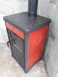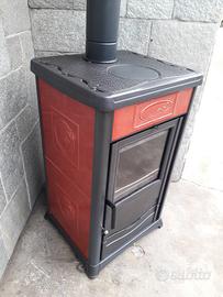 Stufa a legna 8kw nordica rosella plus Nicoletta. Braciere in ghisa, piastra per cucinare in ghisa, casetto. Misure: Altezza 92,larghezza 55, profondità 50 cm . Diametro tubo fumi 130mm