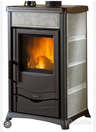 Stufa a legna Rossella con rivestimento esterno in maiolica prodotto di alta fattura artigianale. Dotata di porte e testata in ghisa smaltata e di focolare internamente rivestito di singole lastre in ghisa con sistema di post combustione che aumenta il rendimento e riduce le emissioni dei gas. Il vetroceramico della porta, in un unico pezzo, resistente fino a 700°C, consente un`affascinante vista sulle fiamme ardenti ed impedisce ogni fuoriuscita di scintille e fumo. Sotto la porta del focolare si trova un cassetto cenere estraibile con relativa porta di chiusura.