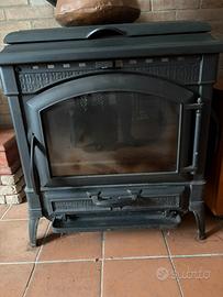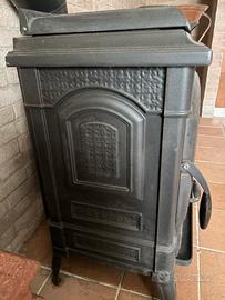 Stufa in ghisa classica a legna,con piastra per cucinare,colore grigio scuro, rilascia un calore omogeno per tutta la tua casa.Esteticamente bella,usata,ma è come nuova.