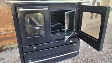 Stufa Nordica Sovrana Evo usata, grigio antracite in acciaio porcellanato, in buone condizioni, accessoriata di coperchio, forno doppio vetro con termometro ,leccarda e ferretto, cassetti portalegna e scaldavivande, corredata di comignolo a botte antivento in acciaio, ghiera e 3 m di tubo in acciaio porcellanato (leggermente graffiato da verniciare ) . Visto e piaciuto, ritiro a cura dell'acquirente .
