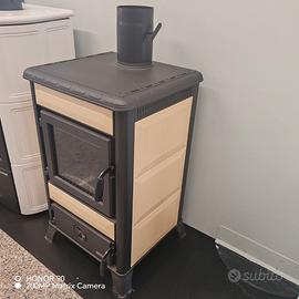 Stufa a legna tradizionale con rivestimento in ceramica, top e piedi d’appoggio in ghisa. Con focolare in ghisa, è dotata di un ampio cassetto cenere con sistema di scuoti griglia. La porta del focolare è in ghisa con vetro ceramico e sistema di autopulizia, a garanzia di una più lunga e limpida visione del fuoco.