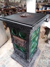 Stufa a legna i ghisa con ceramica. Elegante e rustica, ben conservata e funzionante.