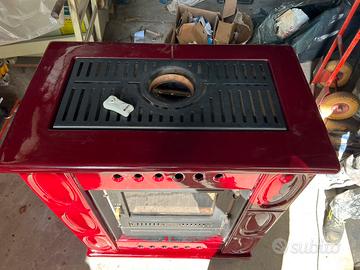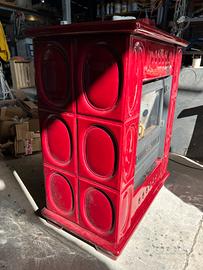 Vendo per terzi stufa a legna Piazzetta con ventilazione e rivestimento in ceramica rosso lava usata, ma funzionante perfettamente.