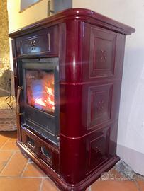 multifuoco System con 4 livelli di velocità, ventilazione frontale con bocchetta orientabile, rivestimento in maiolica, monoblocco in acciaio, focolare in ghisa, deflettori fumi, braciere in ghisa con asta scuotigriglia, porta/maniglia in ghisa con vetro ceramico resistente a 750 gradi, cassetto cenere estraibile, classe energetica A, potenza nominale max kw 9,5. Colore: Bordeaux
