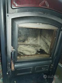 Stufa a legna marca LaNordica, modello Gisella, con piastra superiore e camera di combustione in ghisa. Maioliche frontale e laterali rosse con rilievi. Ampio portello di carico. Lunghezza legna compatibile, fino a 50cm. Diametro canna fumaria 15cm. Canna fumaria non in dotazione. Potenza 8 kW, ideale per riscaldare superfici fino a 90/100mq. Altezza 95 cm, profondità 45 cm e larghezza 53 cm. Parti in ghisa e maioliche integre senza crepe o rotture. Portello con vetro anteriore. Per favore, astenersi perditempo.