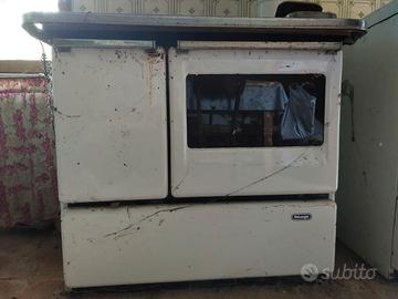 Stufa a legna De Longhi, un po' rovinata esternamente ma funzionante, completa di oltre 3 metri di tubi. Da pulire bene per utilizzarla o eventualmente da usare per parti di ricambio.