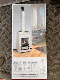 Vendo stufa a legna in ceramica, marca Sergio Leoni, usata pochissimo, ristrutturata come refrattario interno, modello Marlene, 11,5 kw con colonna