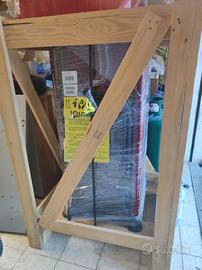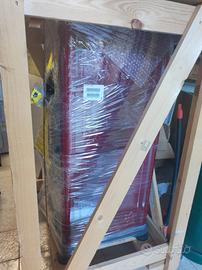 Stufa a legna Marca nordica, modello emiliana, in maiolica bordeaux 6,5 kW ancora imballata.