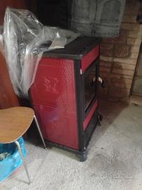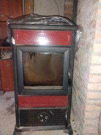 Vendo stufa a legna colore rosso/nero, con sportello frontale in vetro e maniglia di chiusura (come da foto).