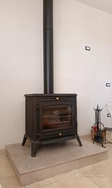 STUFA A LEGNA CAMINETTI MONTEGRAPPA MOD. SERAPHINE RTC 12 KW DAL TIPICO STILE INGLESE INTERAMENTE IN GHISA VERNICIATA ANTRACITE.
