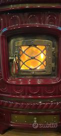 Stufa a legna in ceramica artigianale e ottone di Sergio Leoni modello la Castellana, perfetta con anche canna fumaria in ceramica, molto potente quando si spegne continua a generare calore per varie ore