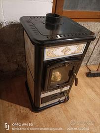Stufa a legna della Siderous, Totalmente in ghisa con rivestimento in maiolica. Controllato tutto il giro fumi, sostituite le guarnizioni di ispezione del giro fumi, della portiera, in perfette condizioni la camera di combustione. Misure 50*50 H90 cm Potenza intorno agli 8kW Su richiesta imballo e spedizione in tutta Italia con corriere, o consegna in zona con furgone.