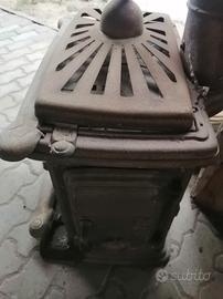 Stufa a legna tipo Parigina in ghisa, funzionante, utilizzata pochissimo. Non sono compresi i tubi.