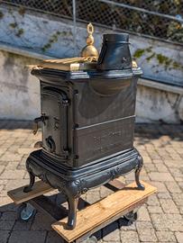 Vendo stufa a legna in ghisa completamente restaurata e pronta all'uso. Completa di corredo tubi fumo
