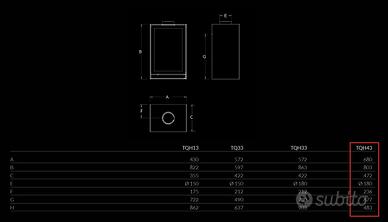 La flessibilità di installazione è il principio dei nuovi modelli TQ/TQH. Per ciascun modello della gamma, voi avrete la possibilità di scegliere tra le quattro basi a vostra disposizione, girevoli a 360º. In particolare, il kit di rotazione universale, può essere abbinato a qualsiasi tipo di soluzione di basamento, a vostra scelta. In particolare, il kit di rotazione universale, può essere abbinato a qualsiasi tipo di soluzione di basamento, a vostra scelta. Potrete assistere as uno spettacolo di calore e di fiamme, grazie anche ai componenti della camera di combustione e al vetro ad emissione termica controllata “IR”. Tutte le stufe della Linea TQ/TQH sono dotate del rivoluzionario sistema di combustione Woodbox, garantendo migliori prestazioni termiche ed ecologiche. Attenzione le varie tipologie di basamento non sono comprese nel prezzo. Si posso avere diverse tipologie di basamenti o realizzali in autonomia. Date vita alle vostre idee, potrete scegliere un basamento in acciaio porta legna o personalizzare l’installazione in totale libertà, con creatività e utilizzando differenti materiali. Con il kit di rotazione a 360° potrete vedere lo spettacolo del fuoco da ogni angolazione della vostra casa. I modelli TQH a sviluppo verticale sono dotati di portellino per il carico laterale che garantisce linearità ed eleganza evitando la fuoriuscita di fumo al momento della carica della legna. Punti di Forza – Raccordo fumi posteriore o superiore – Interni in ghisa – Vetro ad emissione termica controllata “IR” – Cassetto cenere – Basi rotanti opzionali – Kit di rotazione a 360° opzionale Informazioni aggiuntive Peso219 kg Dimensioni (LxHxP) 68 x 80 x 48 Visione del fuoco Frontale, Rotante Diffusione del Calore Radiante Lunghezza Ceppi 50 cm orizzontalmente, 55 cm verticalmente Potenza Nominale da 4 kW a 12 kW Potenza Massima 14 kW Diametro Scarico Fumi 180 mm Rendimento 77,3% (Woodbox) Materiale Interno Ghisa smaltata bianca