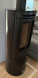 Causa costruzione caminetto vendo stufa a legna Edilkamin Tally 8, modello moderno cilindrico con vetro panoramico. Caratteristiche principali: Altezza: circa 130 cm Uscita fumi: Ø150 mm (superiore/posteriore) Potenza nominale: 8 kW (ideale per riscaldare ambienti fino a 200 m³) Rivestimento in acciaio verniciato nero Ampio vetro frontale con sistema aria pulita Consumi ridotti di legna e in ottime condizioni