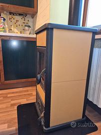 stufa a legna italiana camino modello MISS fianchi ceramica ocra usata poche volte, in ottime condizioni