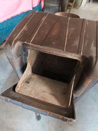 stufa a legna a fuoco continuo, marca Zoppas, completa di tubazioni. Misure L 42cm, P 42cm, H 87cm