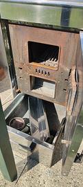 stufa a legna in acciaio con zona braciere modificato in ghisa(maggior tenuta e non si rompe mai)