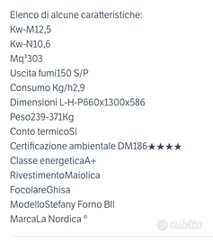 Stufa a legna nordica modello austria con rivestimento in maiolica, disponibile vetro con termostato per il forno superiore, 3 registri per l'aria. Ha una maiolica rotta sul fianco destro in basso, le maioliche solo scambiabili tutte le 6 laterali tra loro. Tubo uscita fumi da sopra o dietro spostando una piastra fissata con viti.