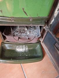 Stufa a legna in ghisa, Warm Morning 414 funzionante, oggetto di antiquariato, completa di tubi e aste asciugabiancheria, colore verde per amatori. Ritiro in zona Alfedena.