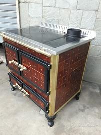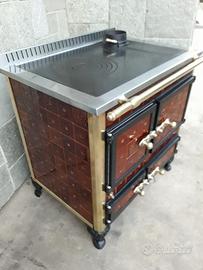Stufa a legna Wekos Rustica ottone 9kw braciere in rifratario spesso, forno, piastra per cucinare in ghisa. Rivestimento esterno in maioliche e ottone. posibilità di trasporto a parte.