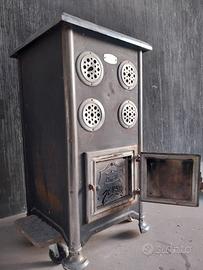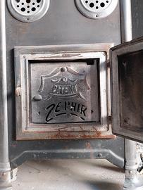 stufa a legna zephir in ghisa a 4 condotti, vintage, in buono stato funzionante