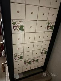 Stufa a legna con forno rivestita in mattonelle di ceramica dipinte. Nuova