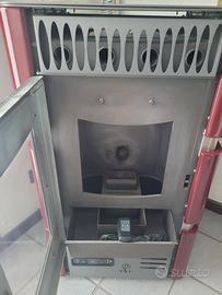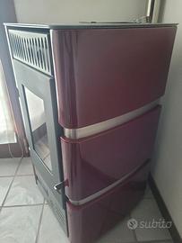 Stufa a pellet 14 Kw in maiolica bordeaux con telecomando come nuova utilizzata max 10 ore per problemi di salute. Comprata da T.S.P. s.r.l. nel 2012.