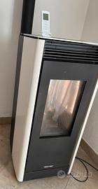 Stufa a pellet Jolly Mec - Ambria 2 - 8 kW, in ottime condizioni, completa di canna fumaria di 2 m, comandi a pannello e tramite telecomando programmabile. Trasporto a cura dell’acquirente