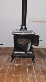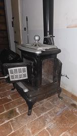 Stufa antica in ghisa, in ottime condizioni con anche appoggio per cottura. Dispone di apertura laterale per carico legna