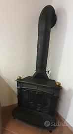 Stufa caminetto modello Franklin, interamente in ghisa, 13Kw, dim 90x65, peso 110kg, uscita fumi da 20 con valvola di regolazione tiraggio. La stufa e' in buone condizioni ed ha una discreta resa, viene venduta in quanto sostituita con una canalizzata. Si trova nei pressi di Pradeltorno, nel comune di Angrogna. E' previsto il solo ritiro a mano a cura dell'acquirente. Tubi del canale fumi in regalo.