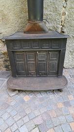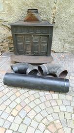 Stufa/caminetto in ghisa con griglia integrata. Tubi fumo diametro 20 due curve, una retta da 1 m Braciere