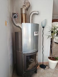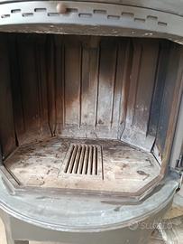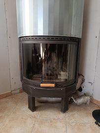 Stufa a legna angolare, poco usata, antina tonda. Ventilazione