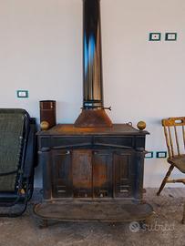 grande stufa a legna in ghisa riscalda molto come un vero camino. da ripulire dall ossidazione superficiale e poi pronta all uso .