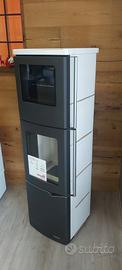 Per rinnovo sala mostra, stufa a legna Palazzetti, con forno e rivestimento in ceramica bianco, nuova 4 stelle, uscita fumi 150mm. misure: 450 x 450 x h1553mm.