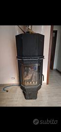 stufa a legna in ghisa con vetro panoramico frontale usata e funzionante venduta per inutilizzo.