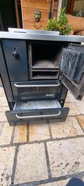 stufa Cucina economica a LEGNA come nuova, utilizzabile da incasso attaccata ai mobili della vostra cucina perché isolata sui fianchi oppure libera istallazione da sola,misura 60x60cm altezza del piano cottura 85cm regolabili. motorizzata con ventola silenziosa, luce forno, forno NUOVO mai utilizzato,