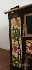 Di dimensioni generose e dotata di forno integrato, la stufa è ancora funzionante e conserva diversi elementi originali di pregio, tra cui il bollitore per l’acqua e l’alza-fuochi, dettagli che ne aumentano il valore storico e collezionistico. Ideale sia come pezzo d’arredo di grande fascino sia per chi apprezza oggetti antichi realmente utilizzabili.
