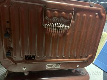 Stufa elettrica vintage *Fratelli Onofri* anni ‘60/’70, in ottime condizioni estetiche e perfettamente conservata. Struttura in metallo smaltato color marrone, con eleganti dettagli cromati e resistenze originali visibili all’interno della griglia frontale. Design retrò iconico, perfetta per collezionisti, arredamento vintage o utilizzo scenografico.