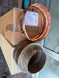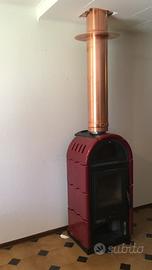 Fornito con la stufa due tubi coibentati in rame ed apposito adattatore per tubi oltre a rosetta sempre in rame per buco soffitto.