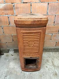 Vendo stufa a legna storica Felici Prato modello MDD 37R, rivestimento in terracotta refrattaria con bassorilievi decorativi.