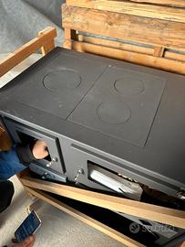 Stufa a legno con piano cottura , forno e porta legns nuova