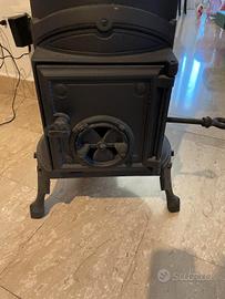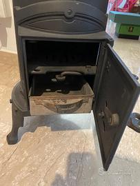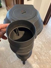stufa in ghisa antica ESKIMO 151N forma cilindrica con carica dall'alto completa ( cassetto porta cenere, squota cenere,griglia e serranfa fumi funzionanti) ingombro ca. h. 85 cm diametro 25 cm