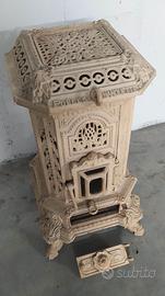Antica e bellissima stufa in ghisa smaltata di Poeles Nanquette dei primi del '900.