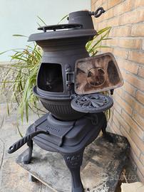 originale dalla Nuova Zelanda stufa in ghisa in ottime condizioni.veramente eccellente per riscaldare mq.30/40,con accessori scalda latte e griglia per mantenere il cibo al caldo.... tutto in ghisa. altezza cm.76 - larghezza cm.53- piedini cm.45 peso Kg 30 circa.