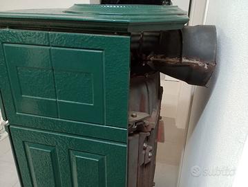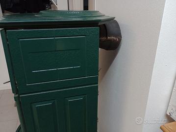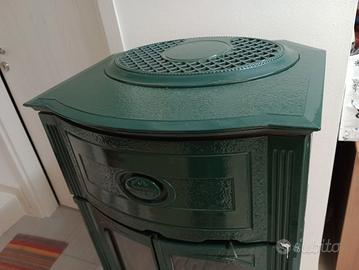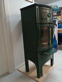 Stufa completamente in ghisa, usata per riscaldare appartamento su un piano di 95 mq. Riscalda per irradiamento.